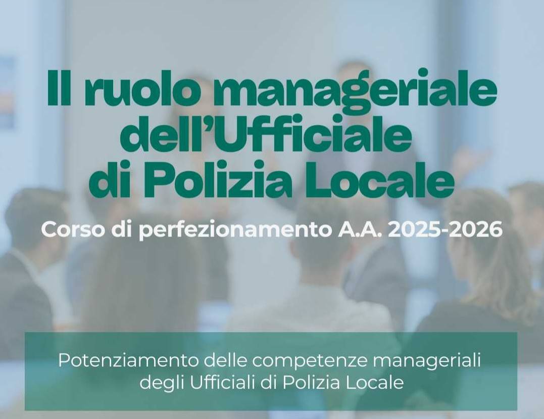 La sicurezza è un bene pubblico e un diritto fondamentale per i cittadini. Gli operatori di Polizia Locale sono attori fondamentali del sistema della sicurezza in quanto professionalmente formati per operare come soggetti di tutela attiva della sicurezza urbana. Tuttavia, con l’affermarsi del concetto di sicurezza urbana integrata a partire dal Decreto Legge 14/2017, agli operatori della Polizia Locale viene sempre più richiesto di operare anche come promotori della sicurezza urbana. Ciò pone gli operatori, gli ufficiali e i comandanti del corpo di Polizia Locale di fronte alla necessità di operare all’interno di un sistema complesso di relazioni sociali, amministrative e politiche che va al di là delle tradizionali competenze professionali della Polizia Locale. A partire da questo scenario in evoluzione, il corso Il ruolo manageriale dell’Ufficiale di Polizia Locale intende fornire agli Ufficiali di Polizia Locale una formazione di base su temi di carattere manageriale con l’obiettivo di sviluppare le competenze necessarie per integrare la formazione professionale come agenti di Polizia Locale con le capacità manageriali richieste ai dirigenti e ai responsabili di funzione all’interno degli enti della Pubblica Amministrazione locale.
